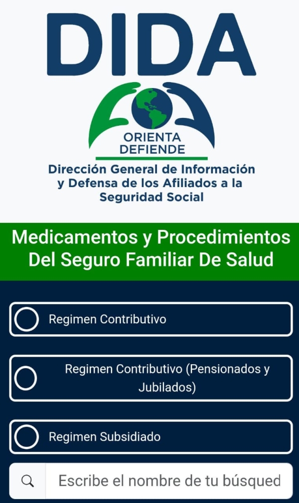 Santo Domingo.- La Dirección General de Información y Defensa de los Afiliados a la Seguridad Social (DIDA) lanza un Catálogo de Medicamentos y Procedimientos Médicos del Seguro Familiar de Salud, con la finalidad de que los ciudadanos conozcan los medicamentos que cubre su seguro de salud. Esta nueva herramienta permite tanto a los afiliados como a los médicos validar, en tiempo real, si un medicamento está cubierto por el seguro del paciente al momento de indicarlo