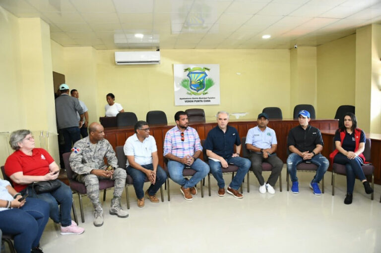 Verón, Punta Cana.- El Ministro de Trabajo Luis Miguel De Camps por disposición del presidente Luis Abinader coordina junto a las autoridades del Sistema Dominicano de la Seguridad Social (SDSS), Gobernación, Cabildo, Sistema Castrense, Juntas de Vecinos, la Iglesia Católica, voluntarios, entre otros, los trabajos de reconstrucción de viviendas y la entrega de raciones alimenticias e insumos del hogar tras paso del Huracán Fiona por Veron-Punta Cana, provincia La Altagracia.