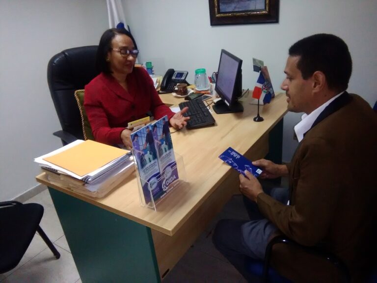 La Romana.- La encargada de la Oficina Provincial de la DIDA en La Romana, Francisca Herrera, sostuvo una reunión con el pastor Sarmiento Mercedes, secretario de Prensa, Propaganda y Relaciones Públicas de los pensionados del Instituto Dominicano de Seguros Sociales (IDSS), en la provincia de La Romana, con quien socializó la misión de la institución, sus principios y los servicios que ofrece.