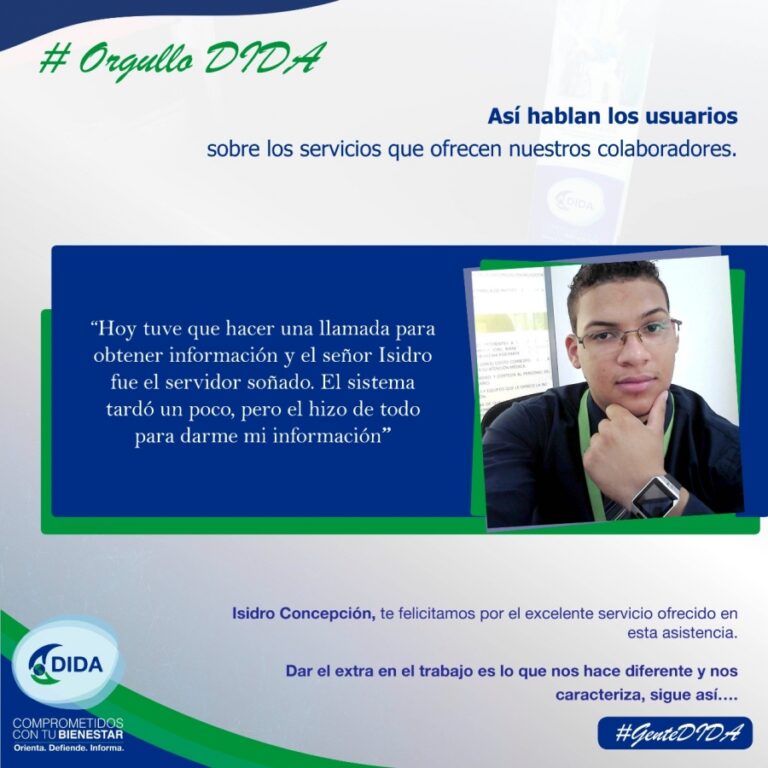 "Hoy tuve que hacer una llamada para obtener información y el señor Isidro fue el servidor soñado. El sistema tardó un poco, pero él hizo de todo para darme mi informacion."