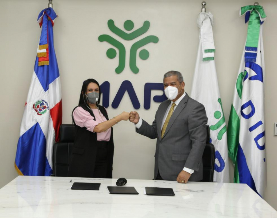 Carolina Serrata Méndez, Directora General de la DIDA y Darío Castillo, Ministro del MAP, firmaron acuerdo para implementar programas educativos a servidores públicos sobre Seguridad Social