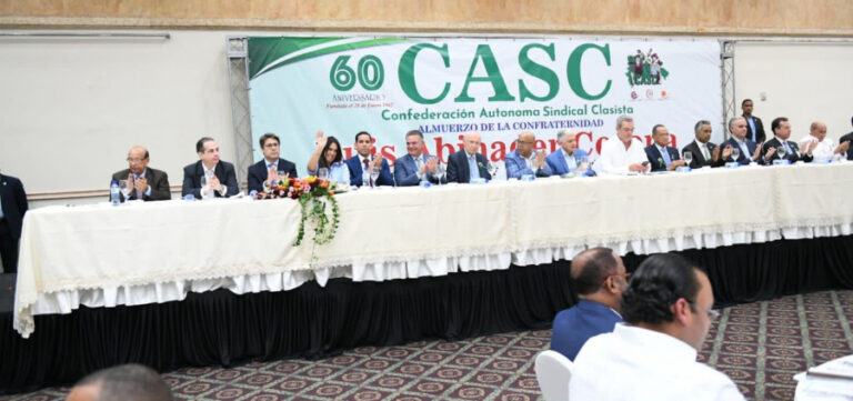 La Confederación Autónoma Sindical Clasista (CASC), tiene como objeto el crecimiento sistemático de todos los sectores de los trabajadores de empresas industriales, turismo, transporte, sector salud y sectores informales de la economía, la Directora General de la DIDA formó parte de la mesa de honor de la importante celebración, junto al presidente de la Republica Luis Abinader, líderes sindicales, empresarios, entro otros invitados especiales.