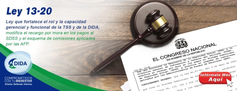 Mediante la Ley 13-20 que fortalece la Tesorería de la Seguridad Social (TSS) y la Dirección General de Información y Defensa de los Afiliados (DIDA), modifica el recargo por mora en los pagos al Sistema Dominicano de Seguridad Social (SDSS) y modifica el esquema de comisiones aplicados por la Administradoras de Fondos de Pensiones (AFP), lo que permite que los empleadores puedan realizar acuerdos de pago, garantizando así que sus empleados puedan recibir los beneficios establecidos en las Leyes 87-01 y 13-20.